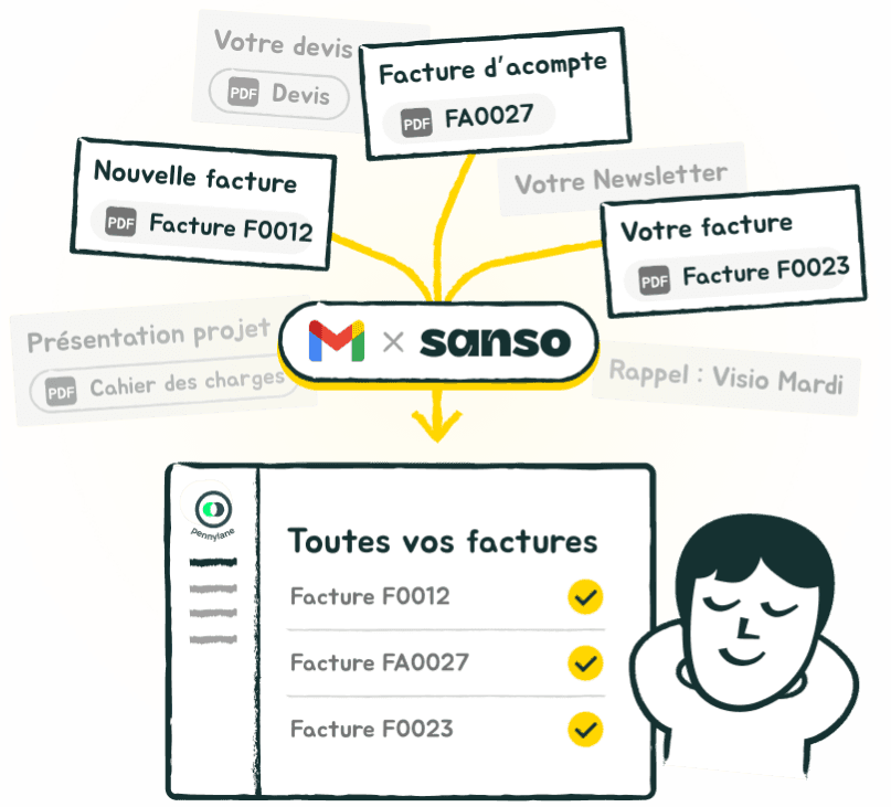 Vous deviez chercher les factures dans vos emails, faire le tri, puis les transférer manuellement à l’adresse Pennylane.