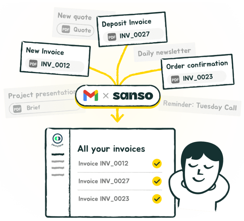 Sanso detects supplier invoices delivered to your inbox and transfers them to Pennylane automatically.