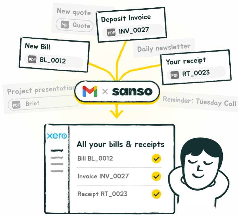 Sanso automatically detects invoices in your emails and sends them straight to your Xero account.